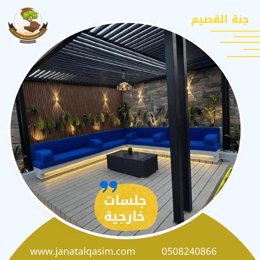 في جنة القصيم لتنسيق الحدائق، نقدم لك تصميم وتنفيذ الجلسات الخارجية التي تتناغم مع جمال الطبيعة وتوفر لك راحة واستجمامًا لا مثيل له. سواء كنت تبحث عن جلسات للاسترخاء في حديقة منزلك أو تصميم مكان اجتماعي في الخارج، نحن نقدم لك خيارات تناسب جميع الأذواق.